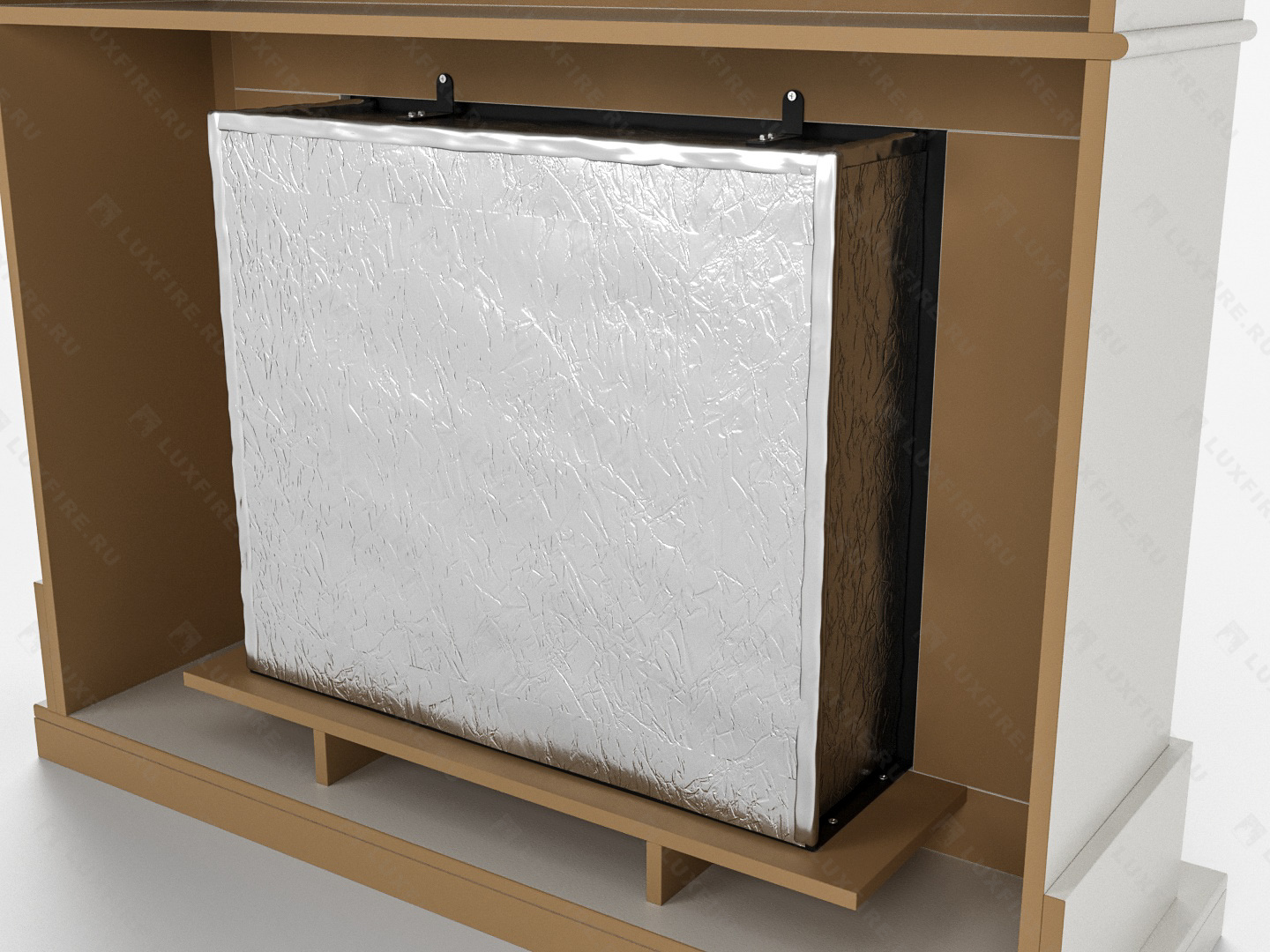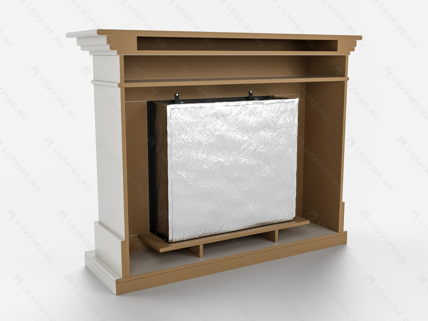 Представляет собой сборную окрашенную конструкцию из МДФ c портальным биокамином Lux Fire "Фаер Бокс 1-26"
