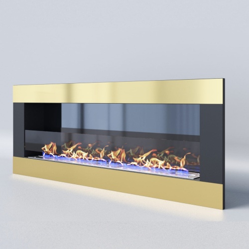 Биокамин золотого с черным цвета, который прекрасно подойдет как встраиваемый вариант для украшения вашего дома.
