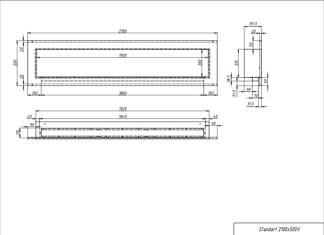 Встраиваемый биокамин «Лофт2100V» изготовлен из стали и нержавеющей стали, окрашен термостойкой порошковой краской.