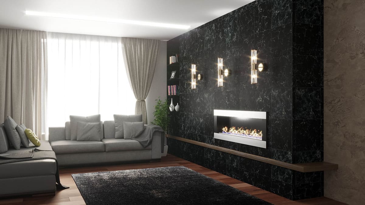Встраиваемый биокамин «Модерн 1300V» изготовлен из стали и нержавеющей стали, окрашен термостойкой порошковой краской.