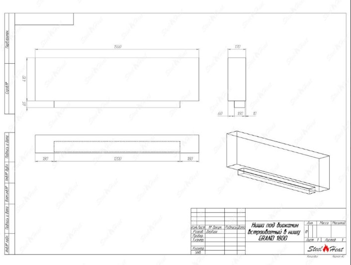 Встраиваемый Биокамин SteelHeat GRAND-D 1800 предназначен для встраивания в глухие ниши из гипсокартона, кирпича, пеноблоков, бетона.