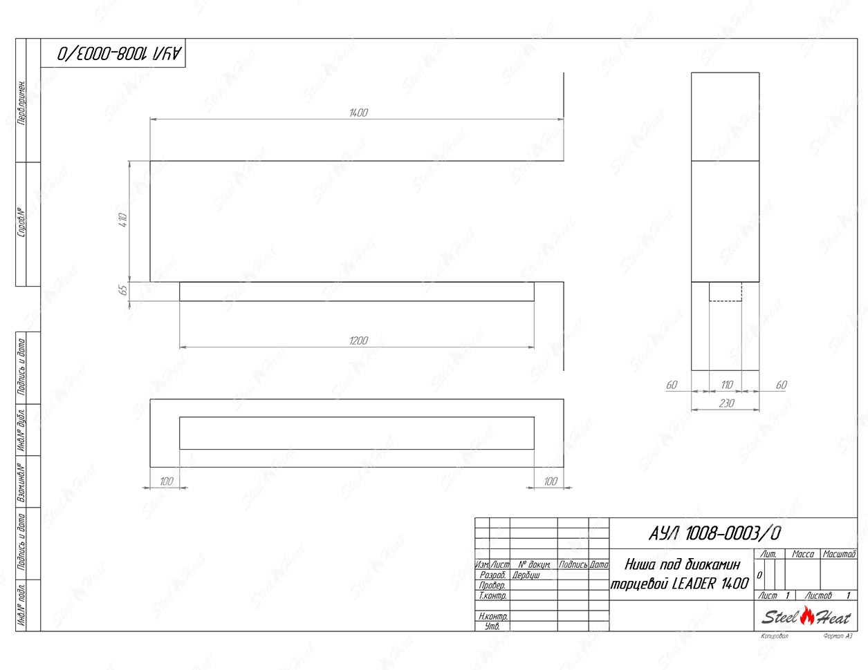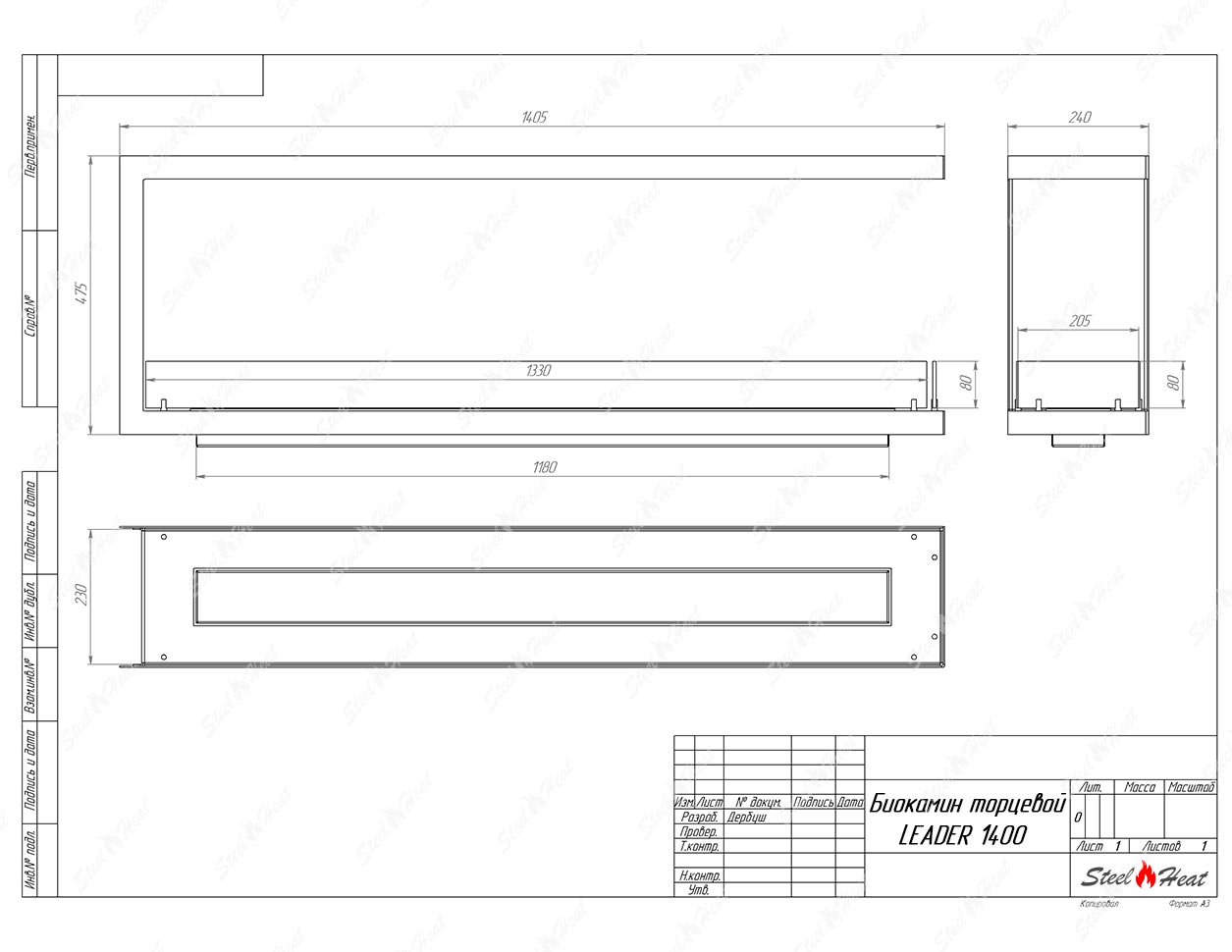 Встраиваемый Биокамин торцевой SteelHeat Leader 1400 предназначен для встраивания в глухие ниши из гипсокартона, кирпича, пеноблоков, бетона.