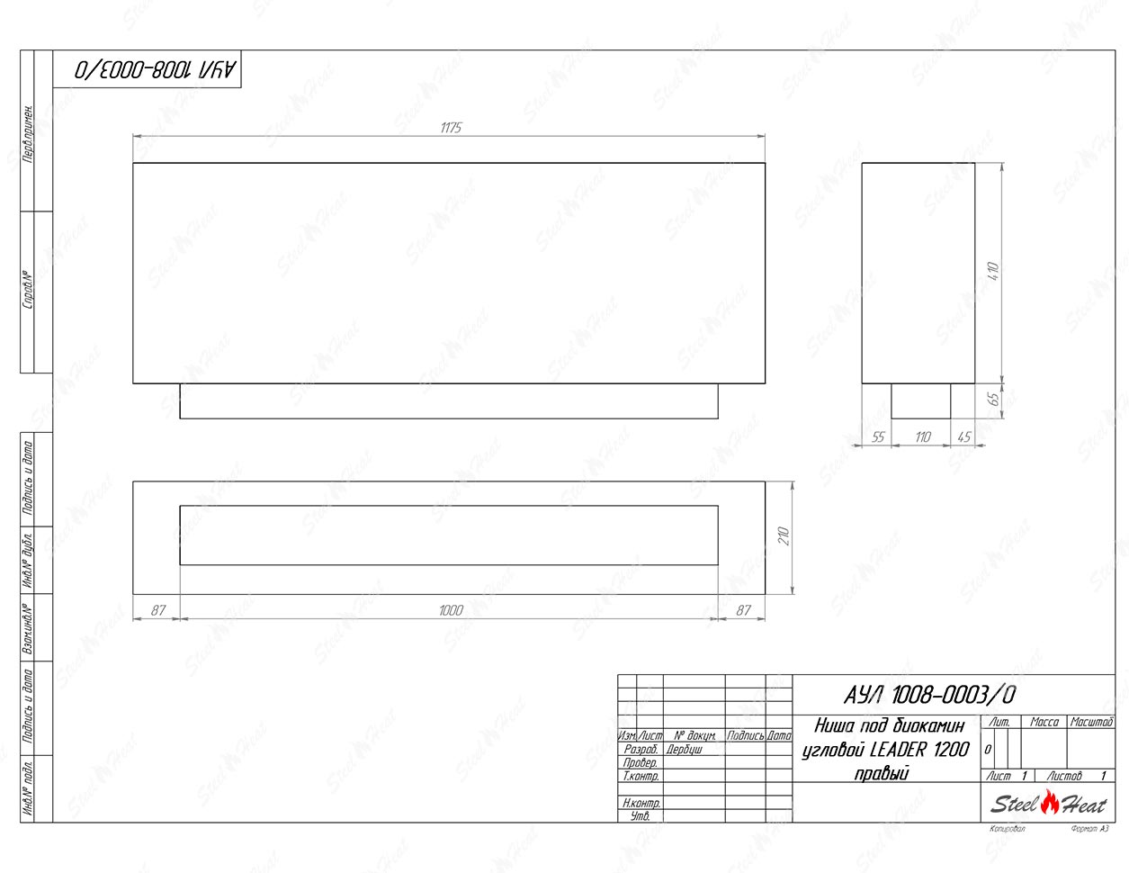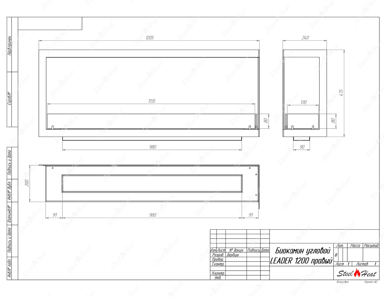 Встраиваемый Биокамин угловой SteelHeat Leader 1200 правый предназначен для встраивания в глухие ниши из гипсокартона, кирпича, пеноблоков, бетона.