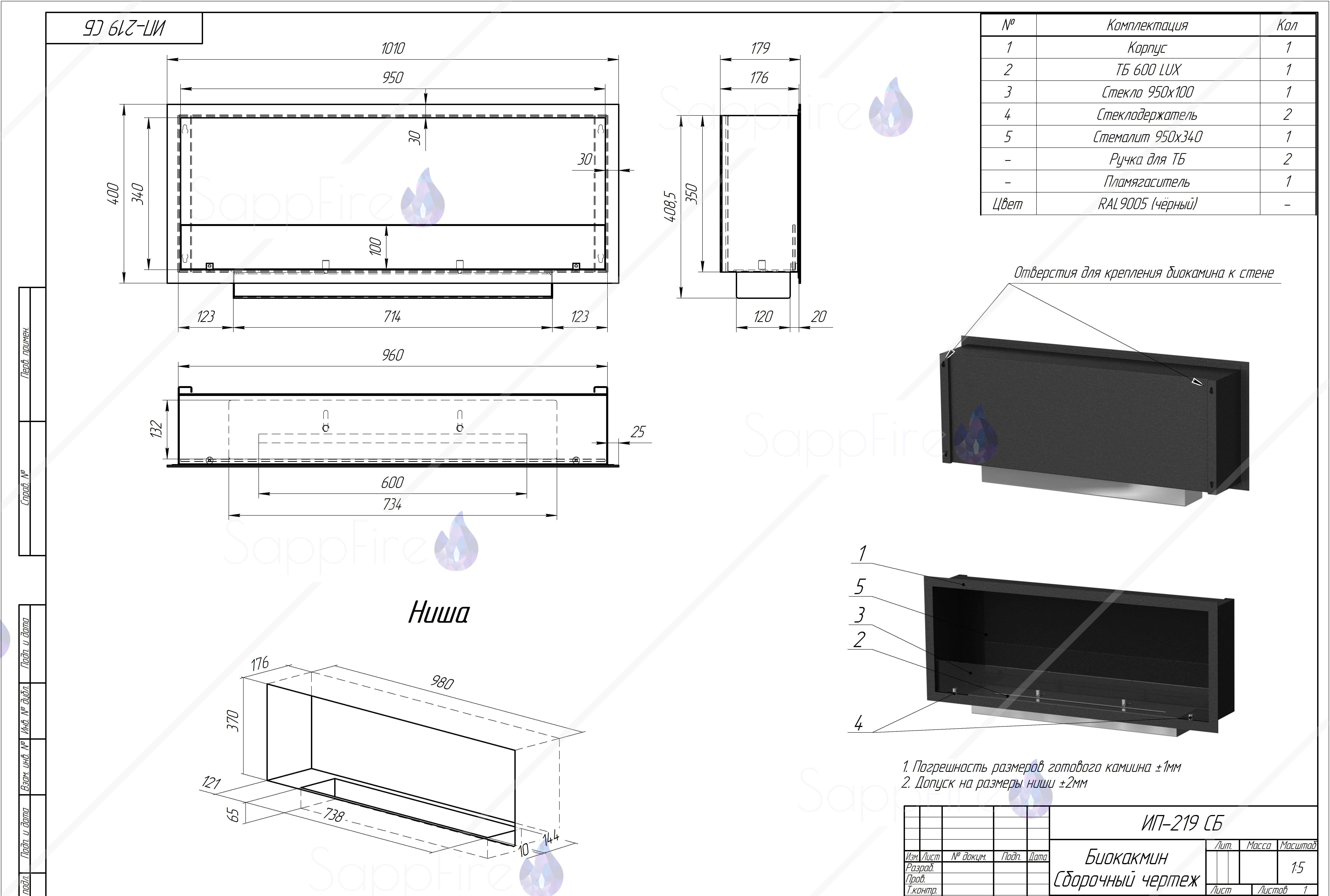 Встраиваемый биокамин / очаг Venera 1000 (SappFire)