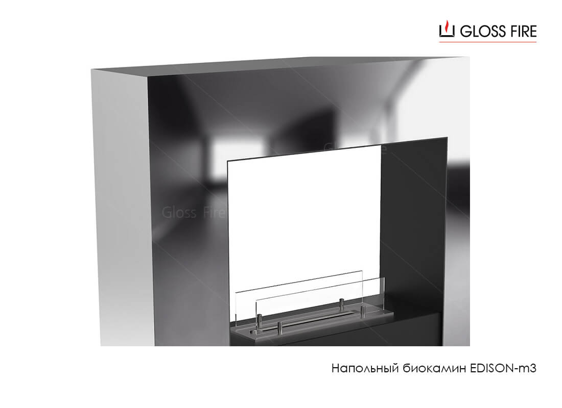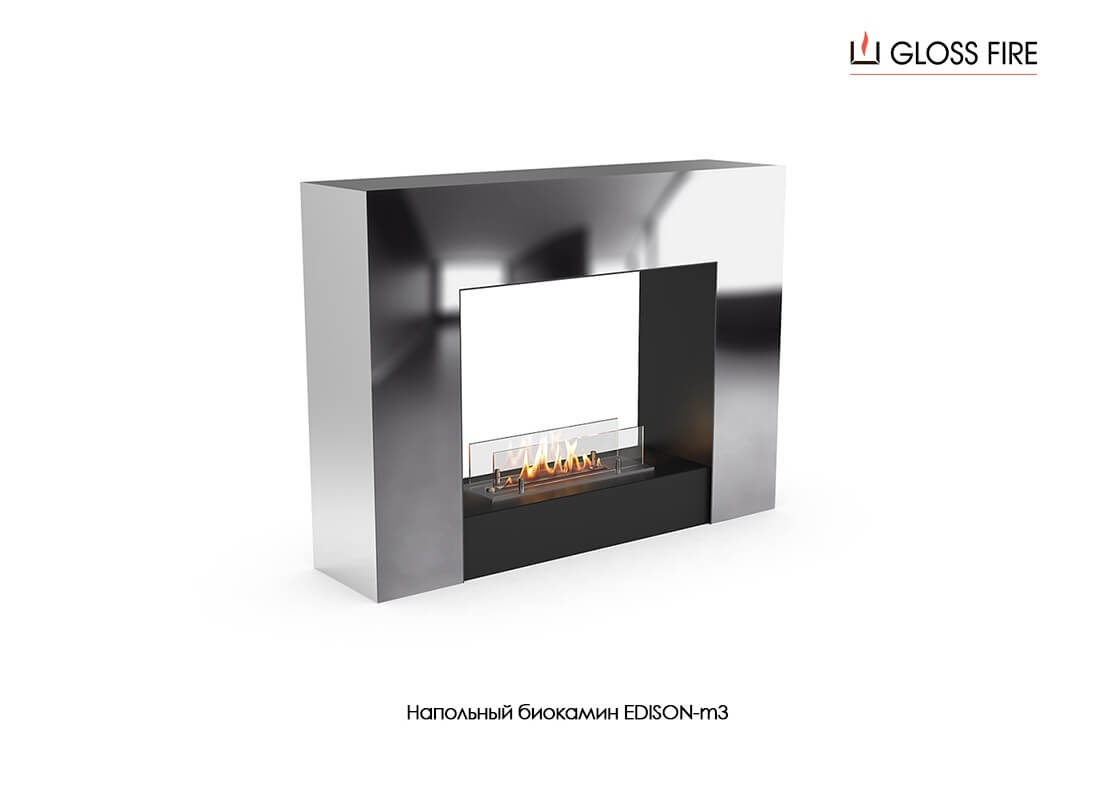 Снаружи камин выполнен из нержавеющей стали, которая отполирована до состояния зеркала. Внутренняя часть корпуса окрашена чёрной термостойкой краской для каминов.