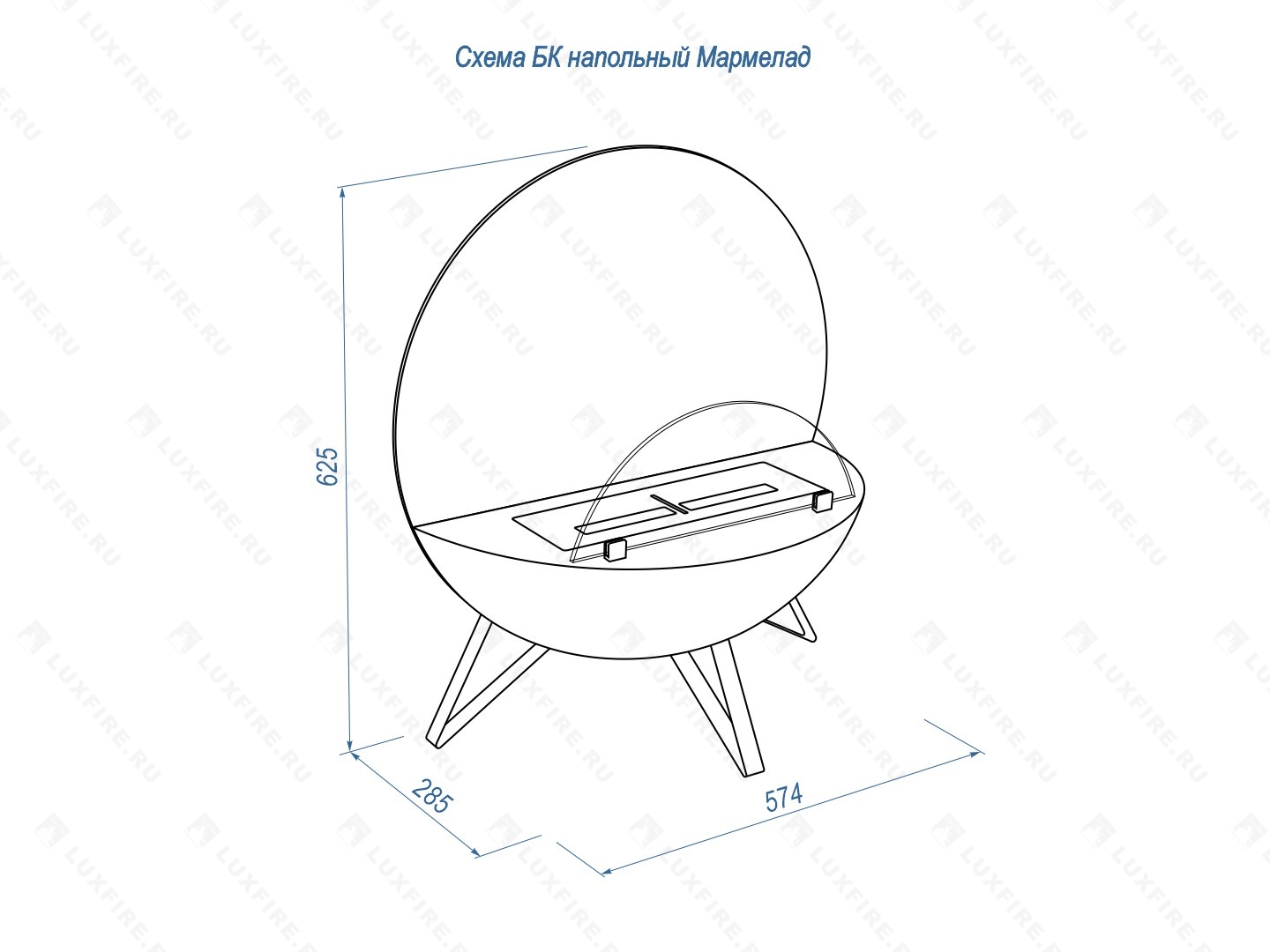 Представляет собой металлическую конструкцию с топливным блоком Lux Fire 300 S. Оригинальный дизайн.