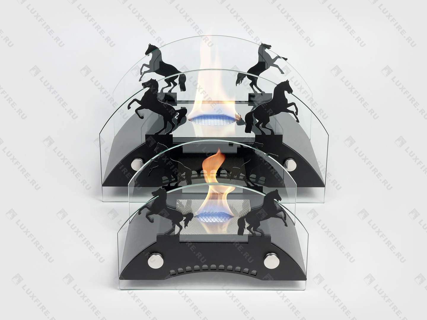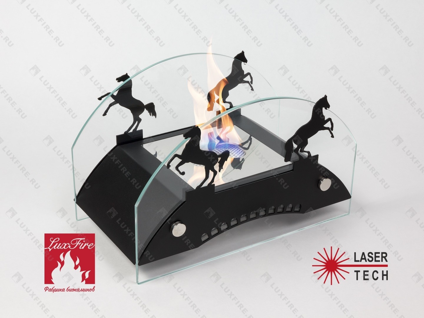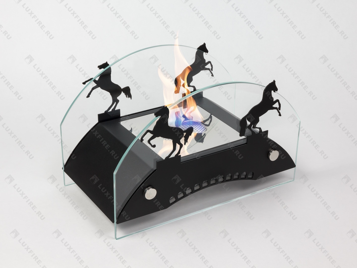 Представляет собой биокамин, который создан по мотивам мостов дореволюционной России середины ХIX-начала XX века и состоит из металлического корпуса с топливным блоком Lux Fire 150-1 огражденным с двух сторон скругленными защитными стеклами на дистанционных держателях и декоративными металлическими накладками в виде «Коней»
