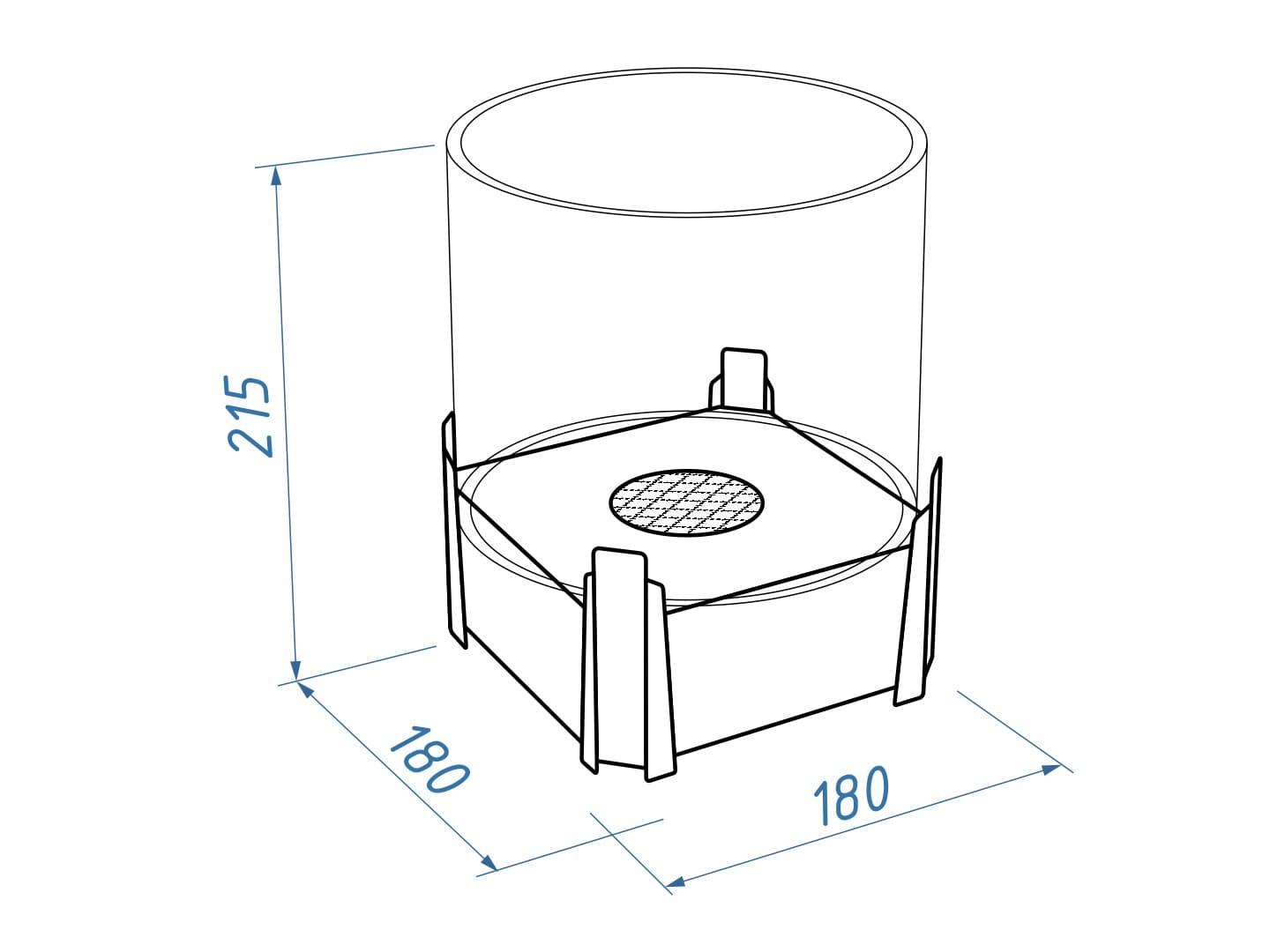 Представляет собой металлический внешний корпус с встроенным топливным блоком Lux Fire 150-2 на декоративных ножках в виде Овна. Огонь ограничивается стеклянным закаленным плафоном диаметром 180 мм.Среднее время горения 3 часа