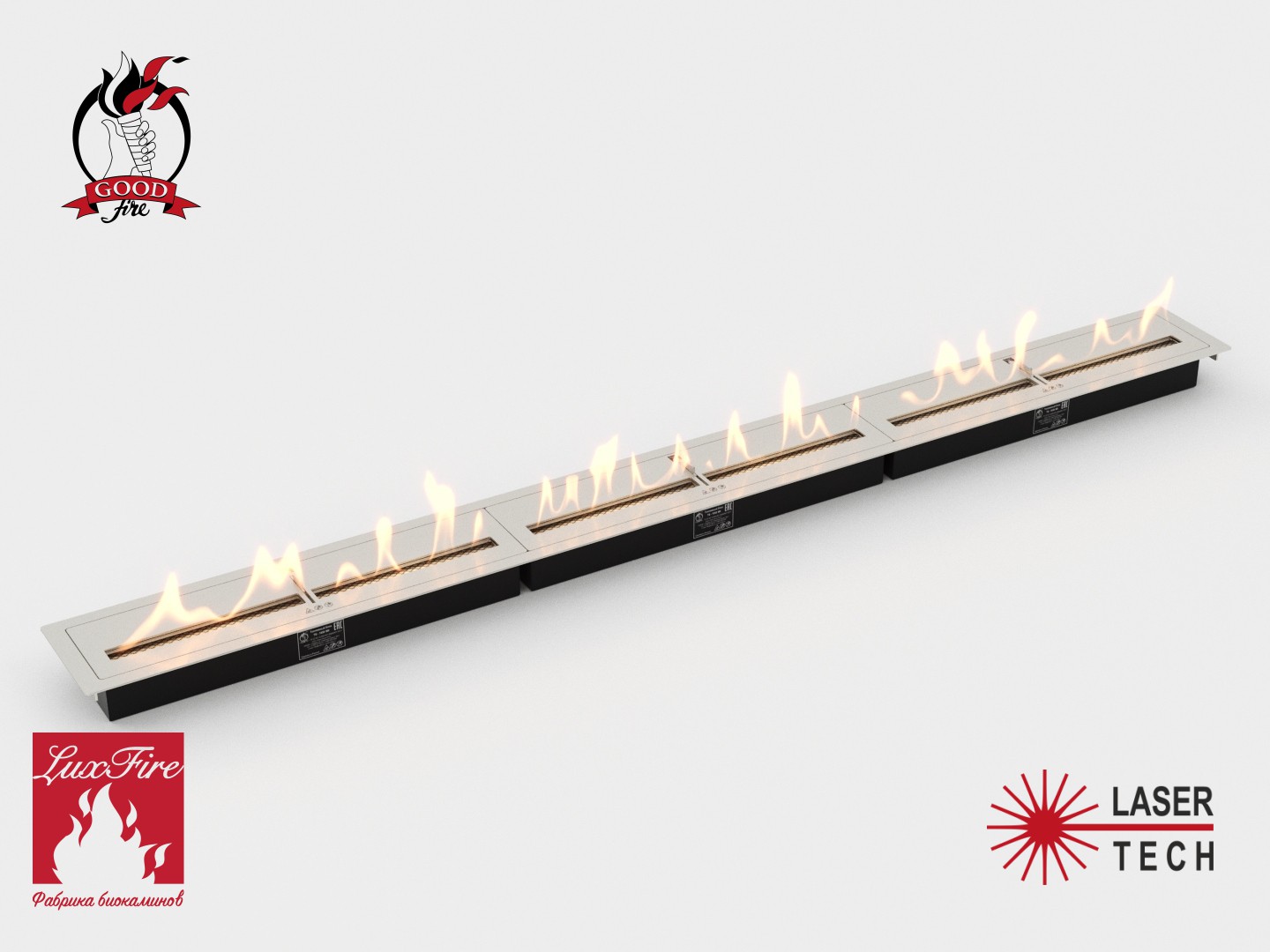 Биокамин выделяется своими размерами, обычно не производят топливные блоки шириной больше 1200 мм, но благодаря технологии Laser Tech, есть возможность скрепить два топливных блока в один. Такая конструкция позволяет гарантировать максимальную надежность и эффектный дизайн, в котором сохранена единая линия огня.