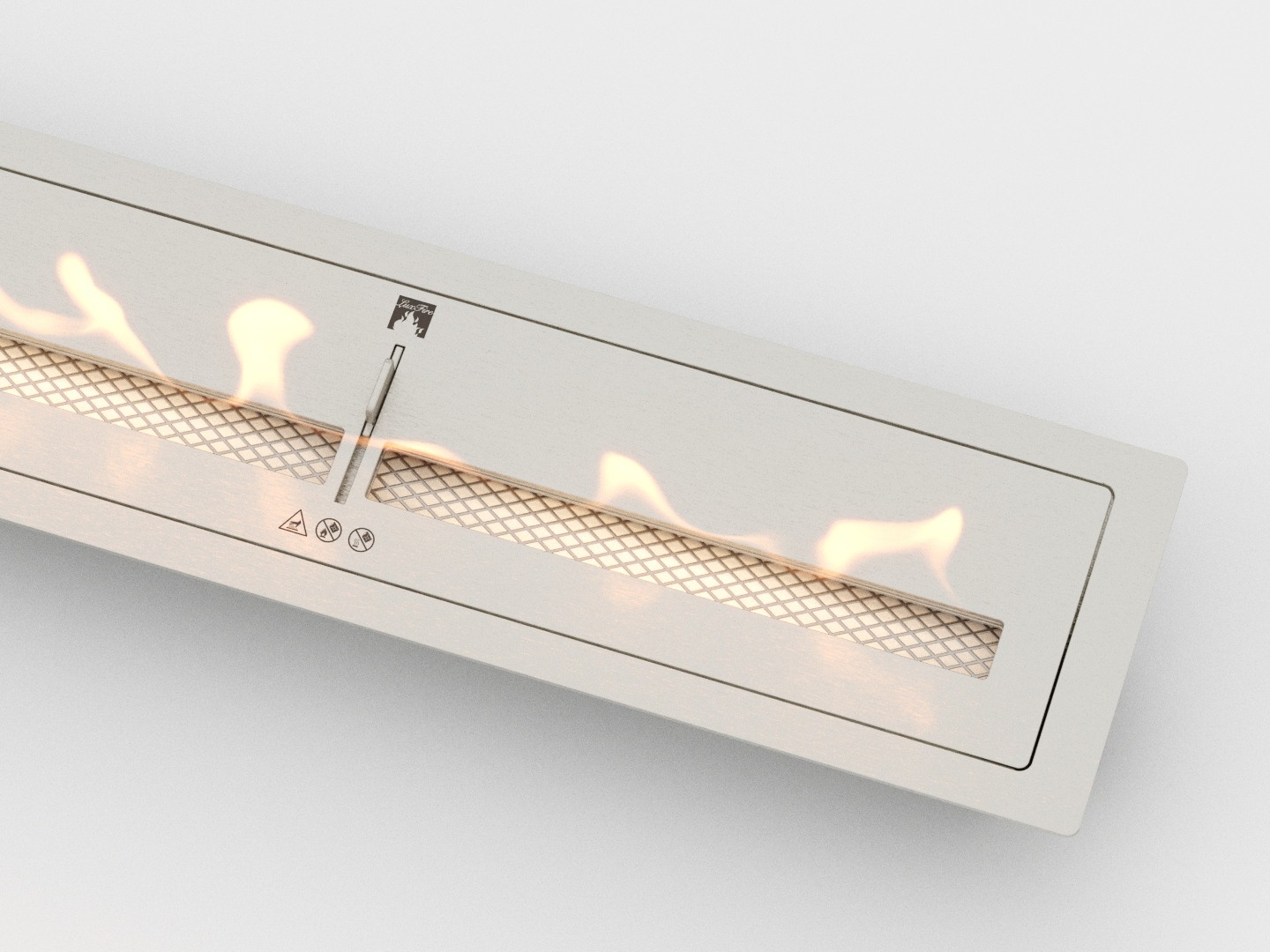 В конструкции горелки биокамина предусмотрена задвижка-слайдер, с помощью которой Вы можете регулировать высоту пламя или погасить камин.
