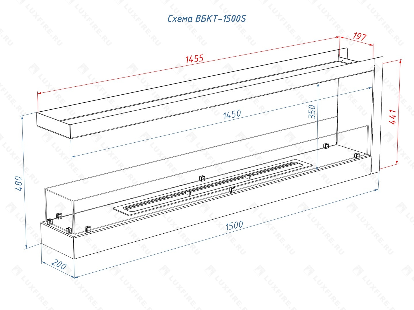 Встроенный биокамин Lux Fire Торцевой 1500 S