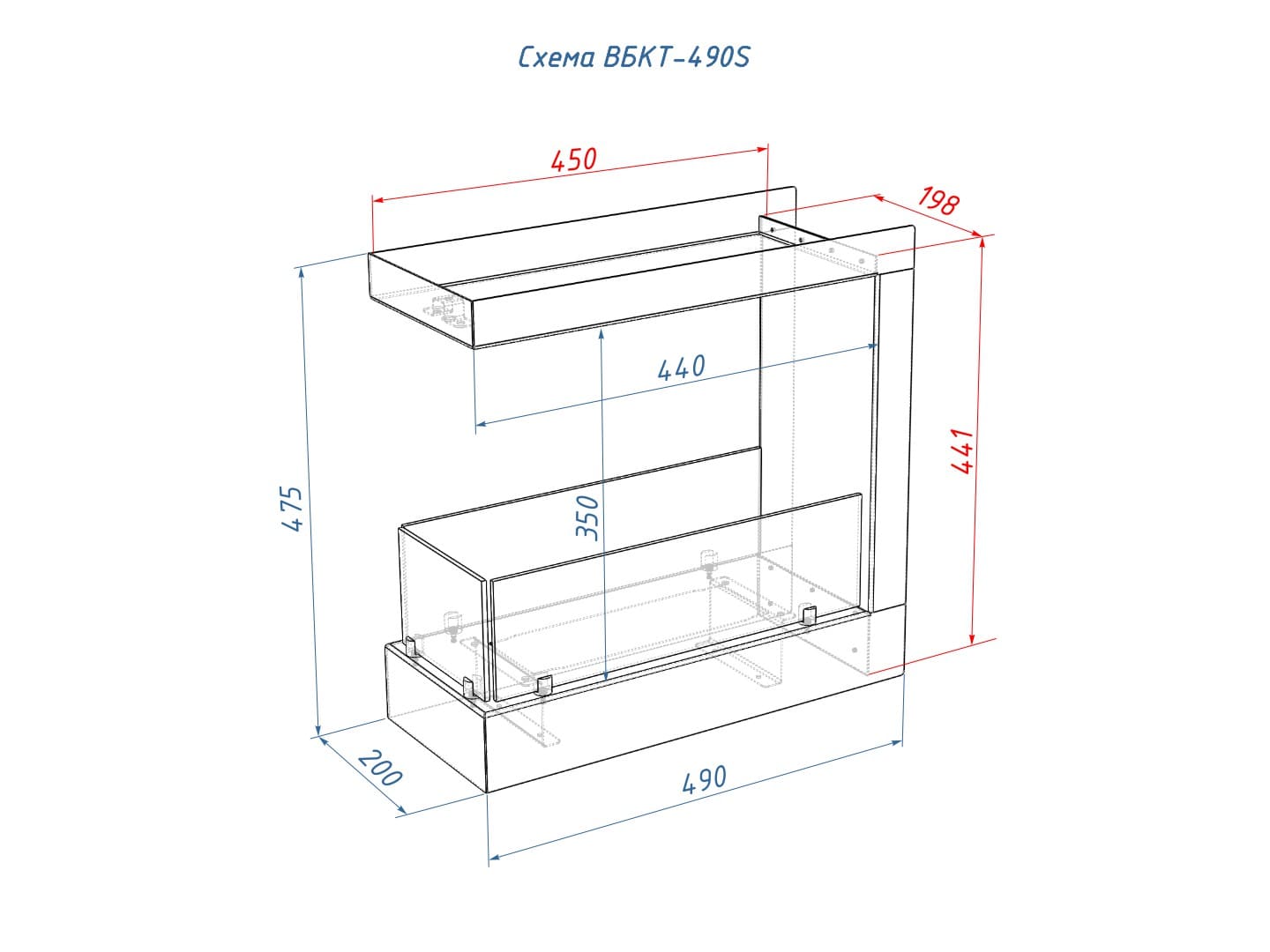 Описание встраиваемого торцевого биокамина Lux Fire Торцевой 490 S