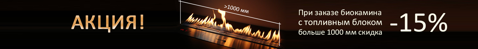 Скидка 15% на биокамины с топливным блоком больше 1000 мм.
